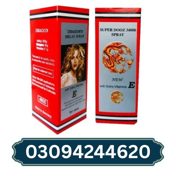 Dragon Super Dooz 34000 Delay Spray is a premium topical solution designed to help men in Pakistan enhance their sexual endurance and gain better control over their intimate moments. Formulated with a potent yet skin-friendly blend, this timing spray works by temporarily desensitizing the most sensitive areas, effectively delaying ejaculation and allowing for a more prolonged and satisfying experience for both partners. In a market where privacy and effective results are paramount, Dragon Super Dooz has become a trusted name for men seeking a reliable way to boost their confidence.